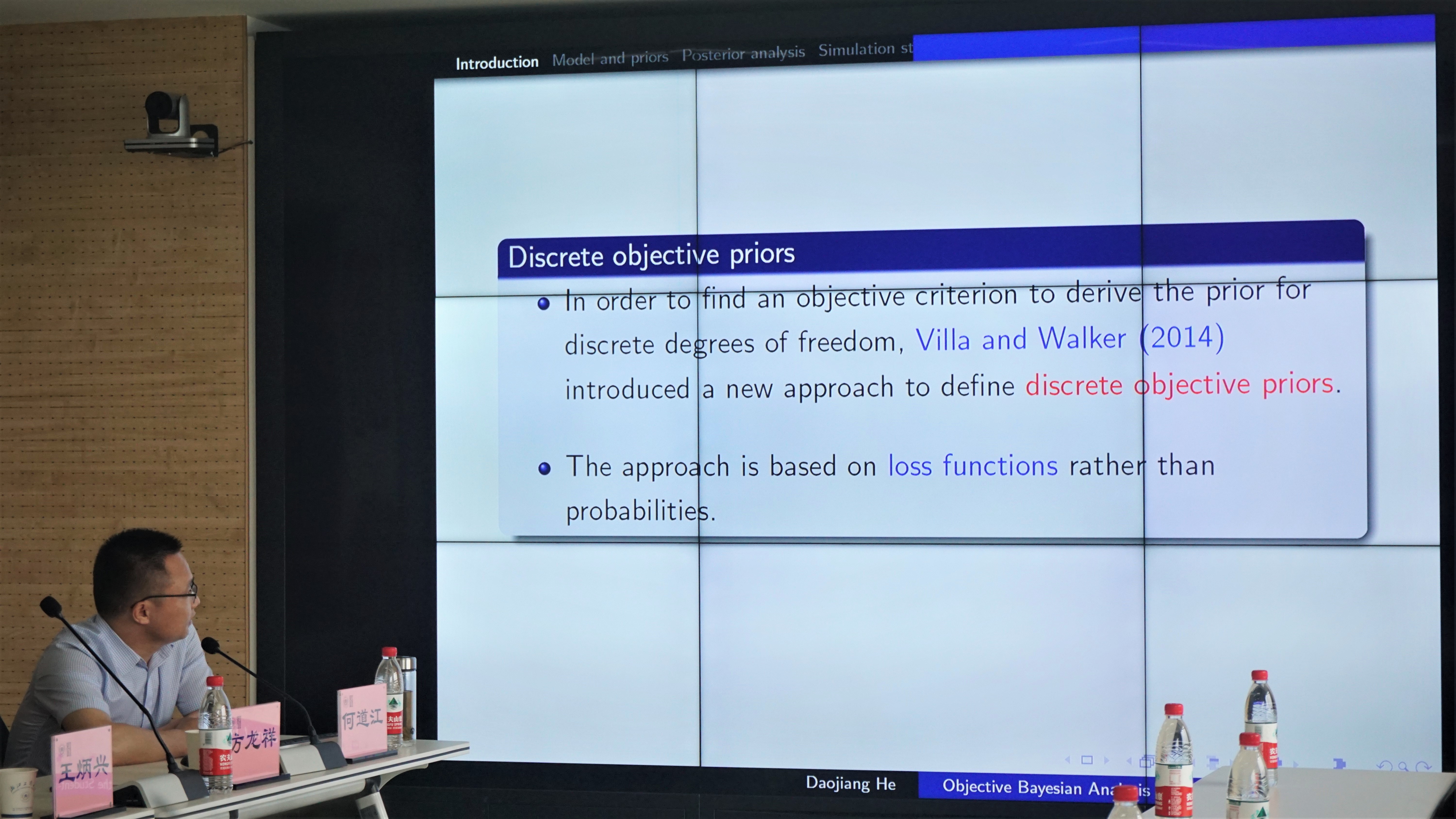 本次讲座,何道江教授着重介绍了一项与孙东初教授和何磊博士合作的研究工作,即关于考虑自由度未知时的t线性回归模型的客观贝叶斯分析。何教授首先介绍了已有学者对不同先验估计方法的研究,以及在不同的序列下先验估计的演变过程。基于此,何道江教授将在模型中的参数的所有可能的分组排序下的参考先验导出,通过考虑更大范围的先验,验证了每个参考先验下的后验性。紧接着他结合M-H抽样和Gibbs抽样方法,进行了模拟研究,研究发现基于参考先验的贝叶斯估计器具有频繁性。最后,何教授将对贝叶斯方法进行实证分析,应用于巴西的股票市场真实日收益率数据中。