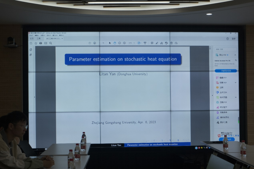 2023年4月6日下午,东华大学闫理坦教授应邀来我校开展了以“Parameter estimation on stochastic heat equation with additive time-space white noise”为主题的学术讲座。本次讲座在综合楼644会议室举行,由浙江工商大学统计与数学学院陈振龙教授主持,部分研究生参加了此次讲座。