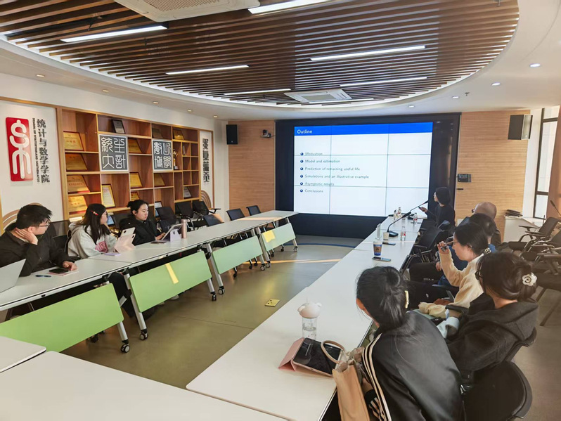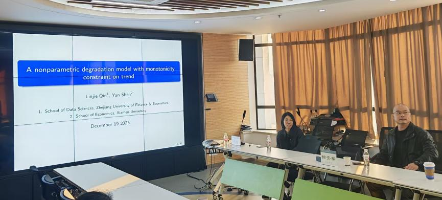 2025年12月19日下午,厦门大学沈雁教授应邀来我校开展以“A nonparametric degradation model with monotonicity constraint on trend”为主题的学术讲座,本次讲座在综合楼644会议室举行,由统计与数据科学学院徐安察教授主持。
